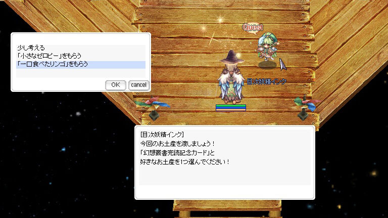 ▲「一口食べたリンゴ」は、幻想叢書「エンジェリング育成日記~ポリンの見る夢~」クリア時に選択報酬として獲得できます。育成状況に関係なく、クリアできればもらえますので報酬時の選択間違いにだけ注意しておけばOK。