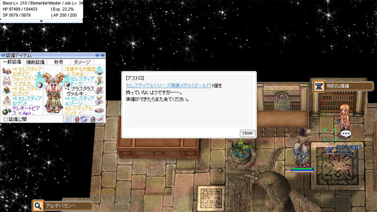 ▲累計報告回数に応じて特別な追加報酬ももらえます。これらによってセレスティアルシリーズが強化できますので活用していきましょう。ゲームを始めたばかり、または復帰したばかりの方にとってはエンチャントの変更ができる「セレスティアルエンチャントメダル」は便利ですので、できれば5回(1日ぶん)の報告だけでもクリアしておくのをオススメします。