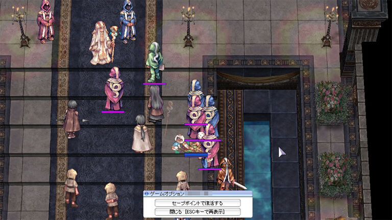 前回の「死なない者」では場面ごとに自動転送が多用されていて、あれはあれで便利ではあったのですが、マップのつながりなどが把握しづらく、シナリオ中で迷子や戦闘不能になってセーブポイントに戻されるようなことがあると、復帰しようにも、ドコにいたかわからないというデメリットもありました。