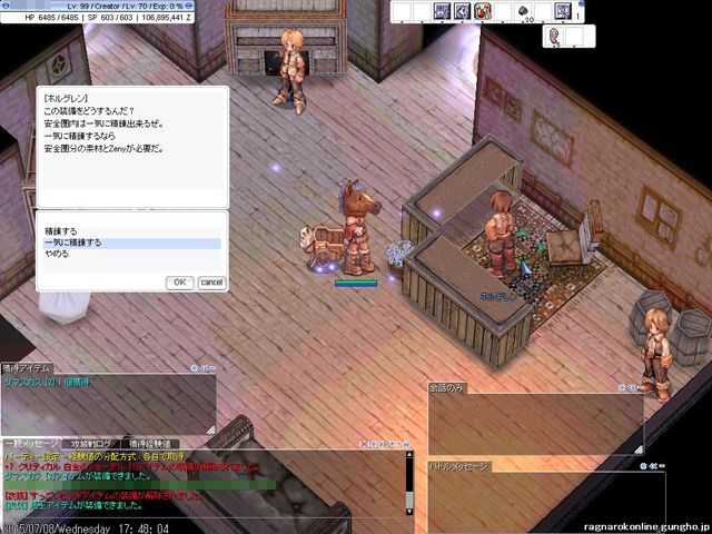 BaseLv90に到達し、メモリアルダンジョン「ゲフェン魔法大会」に挑戦できるようになれば、メモリアルダンジョン内で稼げる経験値と、報酬の「ゲフェン魔法大会コイン」をBase経験値に換えてもらうことで、BaseLv99、つまり転生まで一直線という感じです。