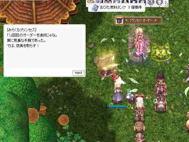熟練プレイヤーにはおなじみ、春の精錬イベントの準備のための“ぷちイベント”ですね。次の精錬イベントのストーリーの要となるNPCが登場し、簡単な討伐依頼をクリアすることで精錬イベントで使用できるポイントなどがもらえてしまいます。このポイントがあると、イベント開始直後からいきなり精錬を試すことができる……はず。特にスタートダッシュをしたい方にはわりと重要かも。時間が取れるようなら多くのキャラでクリアさせておきたいですね。