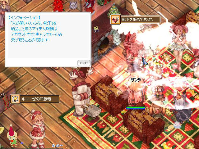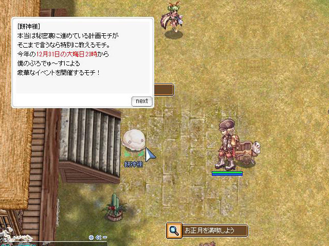 ▲アマツには全国のカプラ職員も大集合。イベント開始時にはカプラポイントを「お年玉」に交換してもらえます。ちなみに「お年玉」は使用するとランダムでZenyが獲得できるアイテム(比較的少額なので、あまり期待はせぬよう……!?)。