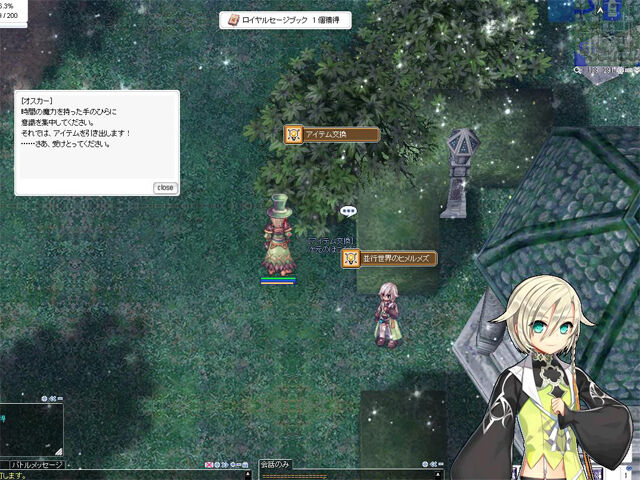 会話する前は、来週から『RO』内で「時空英雄戦記」が復刻されるのかなと思いましたが、肝心の時空英雄くんが『ラグマス』の世界へ連れ去られてしまっているのでそれはないんじゃないかなという感じ。
