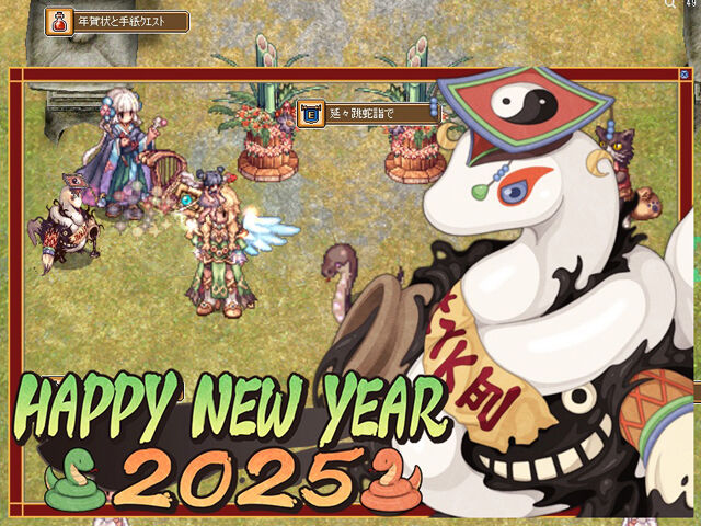 さて、年の瀬も押し迫ってきた時期ということで、『ラグナロクオンライン』では、12月24日(火)の定期メンテナンス終了後から正月イベント「お正月2025 天まで伸びろ!! 延々跳蛇詣で」の準備が行われています。