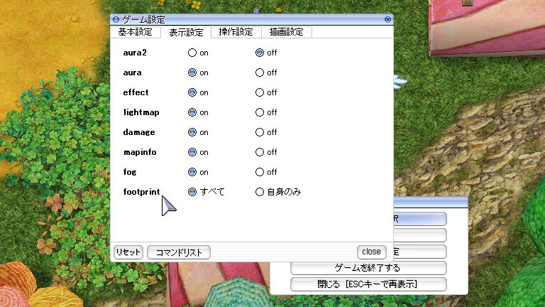 また、今後の対応として、新エフェクト「足跡」が予定されている模様です。先に「ゲーム設定」の「表示設定」に「footprint」の項目が追加されています。どんなエフェクトが追加されるのか、そしてそのアイテム(装備?)の入手法なども大変気になるところです。