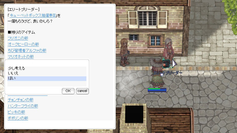 もうひとつのお楽しみなアイテムについては、「キューペットボックス抽選券III」をチョイス。まだ「フリオニの卵」を手に入れていないんですよね。