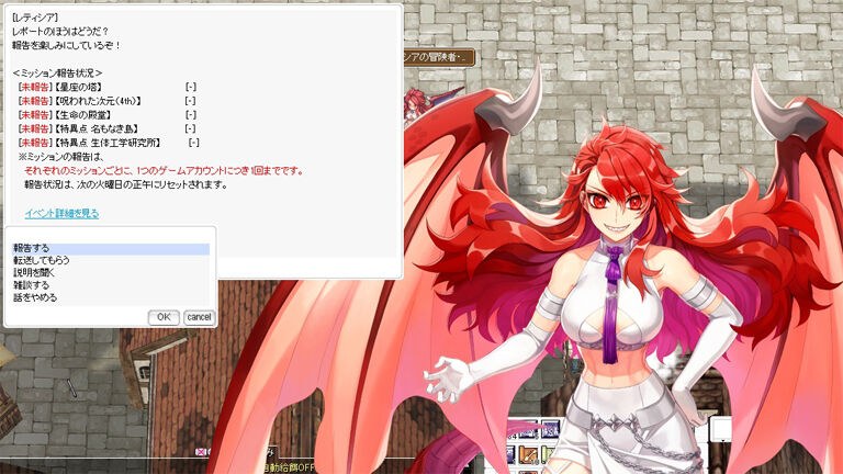 さて、2026年2月24日(火)の定期メンテナンス終了後からは、「レティシアの冒険者レポート」がスタート。こちらは1週間限定のぷちイベント。高レベル向けのキャラ育成イベントで、高難度のメモリアルダンジョンなどを一定条件までクリアすることで経験値報酬がもらえるというものです。