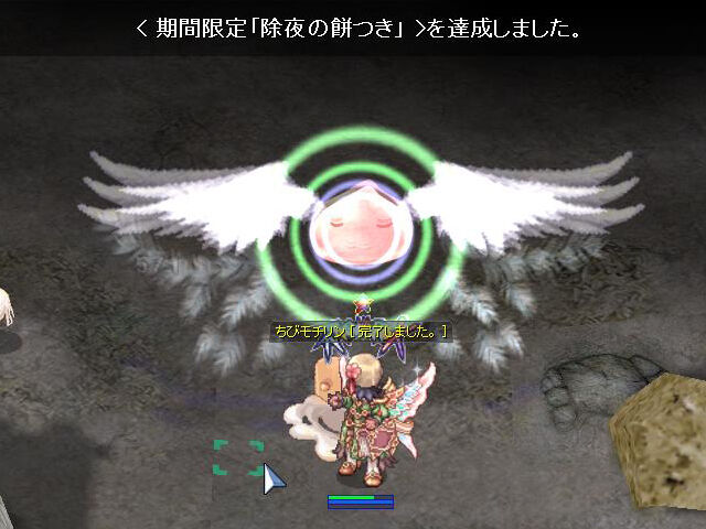 お正月イベントでは、12月31日(土)から1月1日(日)の年越しにかけて、「除夜の餅つき」イベントが開催されました。いつもはこの時期はなかなかログインできないのですが、今年は時間が作れたので珍しく私もログインして「ちびモチリン」を討伐してきました。