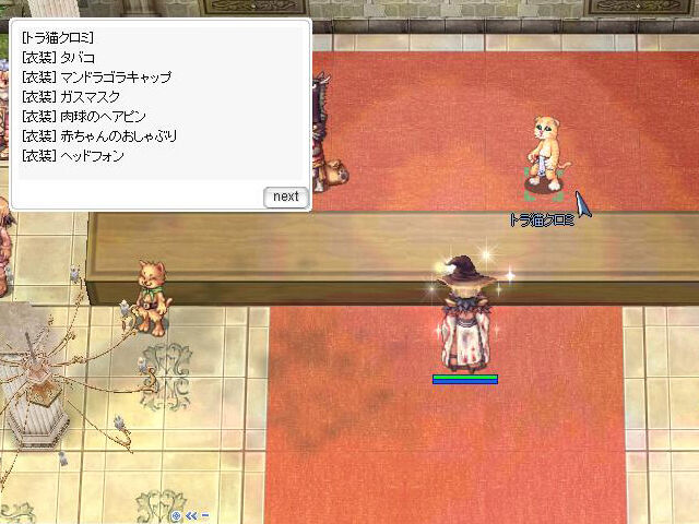 元手ナシでアイテムを獲得したい場合はクエスト(「ゲフェンフィールド 05」にいる「ミュー」から受注)で「肉球のヘアピン[1]」を入手できますが、「コボルドアーチャー」1,000体撃破という試練が待っています。