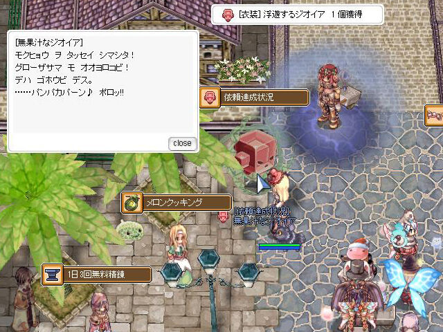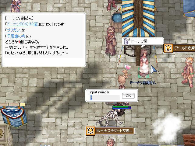 なお、「夢幻の迷宮」へ挑戦する際の回復アイテムについてもぷちイベントが行われています。おなじみ「ドーナツお姉さんの出張販売!」が開催中。「子悪魔の角」または「ブリガン」を3個 or 9個渡すことで、いわゆる3%回復剤の「チョコレートドーナツ」を入手することができます。
