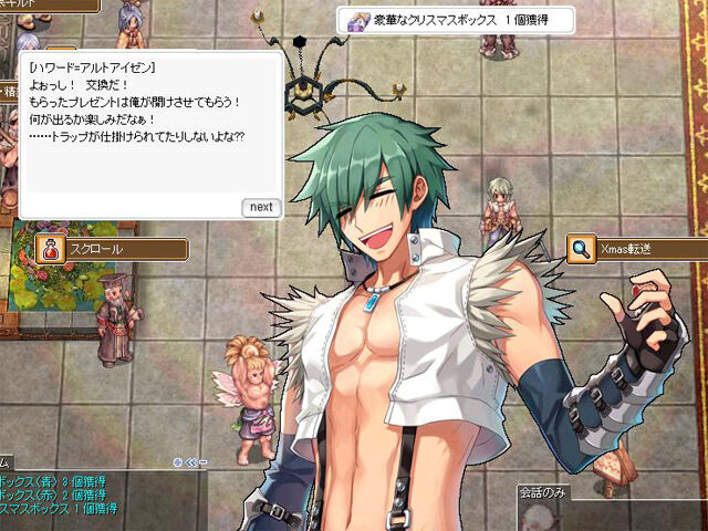 ▲そういえばご紹介を忘れていましたが、クリスマスイベントとしてアニバーサリーイベント会場に来ている季節イベントNPCにラッピングされた「プレゼントボックス」を渡すことで今年も「豪華なクリスマスボックス」がもらえます。ひとりのNPCにつき3回まで交換できるようになっています。
