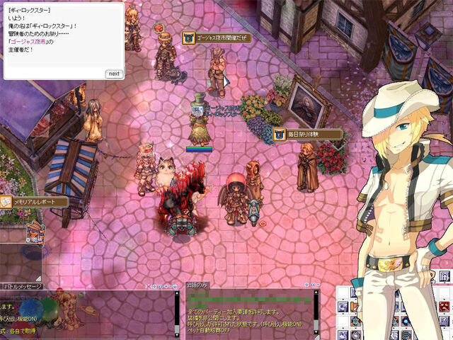 さてさて、21stアニバーサリーのビッグイベントとして、予告されていたように「21stアニバーサリー ゴージャス夜市」が開催中。夜のプロンテラを舞台に、様々な露店が立ち並ぶ、賑やかなお祭りとなっています。