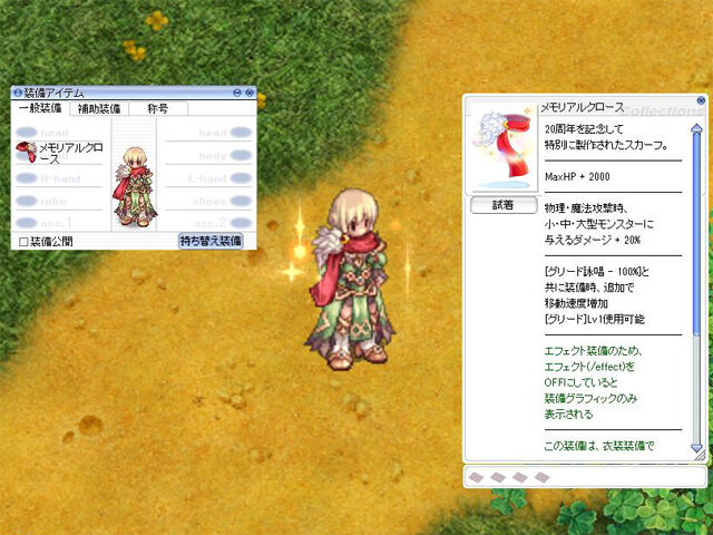 遠距離攻撃を強化するメカニック系向けのアクセサリー(2)、「ディメンションリンケージストーン[1]」、いわゆる殴りカーディナル系向けの兜上段装備、「リス耳フード(アルビノ)[1]」、全体的な底上げ強化、および条件に応じて「エルヴィラキャンディ」系アイテムの再使用待機時間を解除するというオンリーワンの効果を持ったアクセサリー(2)、「創星石のアミュレット[1]」、エレメンタルマスターの魔法スキル系全般のダメージアップが見込めるアクセサリー、「ロードオブエレメンタル[1]」と、どれも強力そうなアイテムがラインナップされています。
