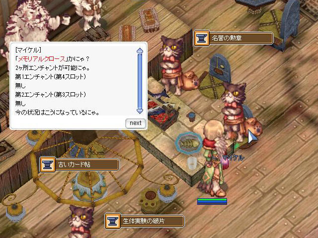 この<悠遠なる天上の都>、現在は「創星石のアミュレット[1]」限定のスペシャルエンチャント効果(担当NPC:ジュウべえ)で、100%成功させるためには「1000小為替」20,000個が必要(20G zeny)ということで、強さに応じた高いハードルになっているようです。