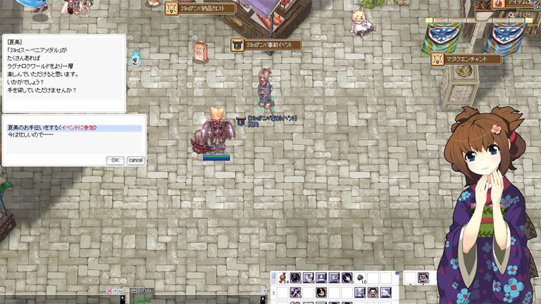昨年も同様のイベントが展開されたので、ベテランプレイヤーの方には説明するまでもないかもしれませんが、プロンテラにやってきたNPC「夏美」から、討伐クエストや納品クエストを受注・報告できるという内容です。