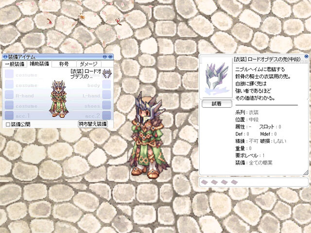 ▲ちょうど今月で期限を迎えるShopPointがあったので一口分引いてみたところ、「[衣装] ロードオブデスの兜(中段)」が出ました。うーん、エレメンタルマスターにはちょっと似合わない感じでしょうか(笑)。