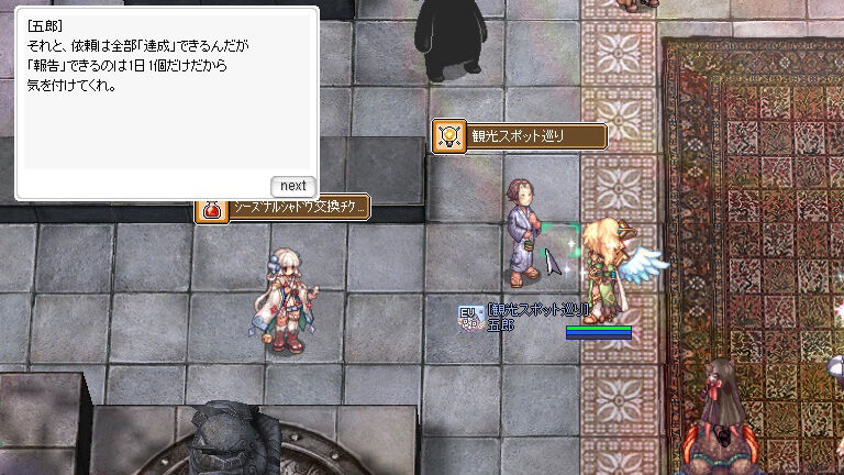 さらに、「ミミミのミッションマスター」では、冒険者アカデミーにいる「ヌヌヌ」について、ノービスのキャラクターは転送しないように変更されています。右も左もわからない初心者が誤って転送され、戻り方がわからないという問題があったからのようです(実は「ミミミのミッションマスター」の会場付近にいる「カプラ職員」に話しかければ無料でプロンテラに戻してはくれるのですが……まぁ初心者さんや復帰者さんでは気づきにくいですよね)。