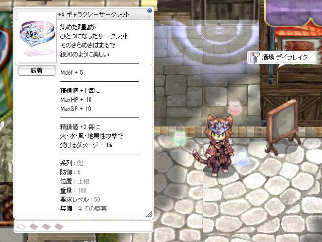 そして12星座が描かれた魔法陣風の「[衣装] アストラの加護」。明滅する陣が幻想的で、暗い場所では非常にSS映えしそう。こちらは「兜下段」ではなく、「肩にかける物」の装備位置になっているので、動物系の衣装装備などと競合しないのも嬉しいかも。