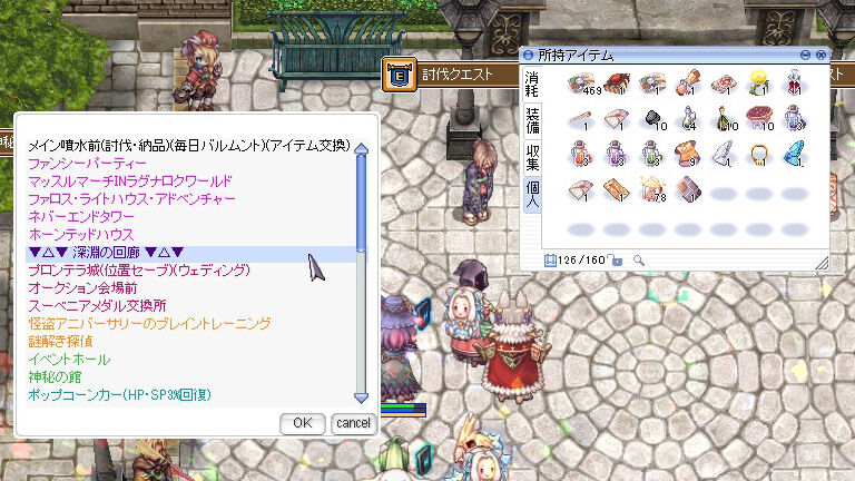 ちなみに「プロンテラ深淵(農場)」以外のマップはいろいろと特徴付けられており、それに合致したキャラで狩りがしやすくなっています。具体的には以下にまとめてみましたので参考までに。