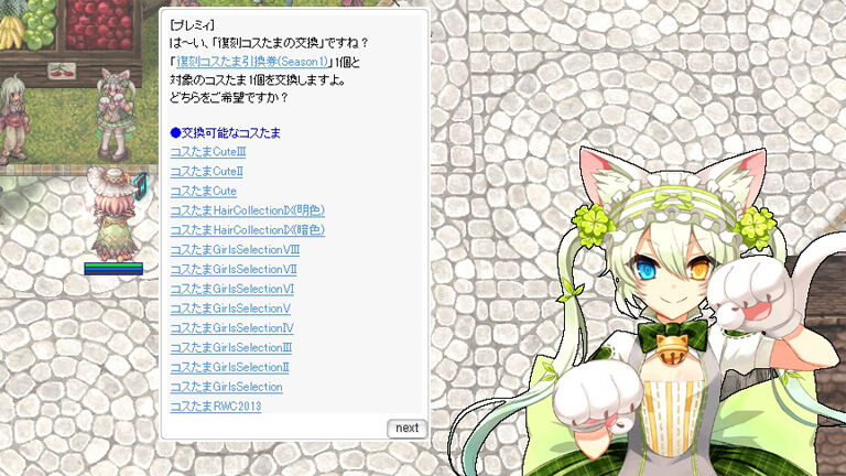 さて、今回初めて「ロイヤル・スウィート・ティーパーティー」に参加するというプレイヤーの方にアドバイス。ロイヤルチョコパックからのカードの排出率はかなり低く設定されています。巷で売っているチョコパックを買い漁ってイベント終了まで開け続けても出るかどうかという感じ。もし、資産に余裕がないのならロイヤルチョコパックは露店で売るのがオススメです。